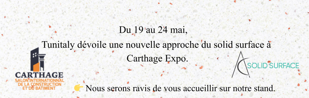 Notre participation précédente à Carthage Expo a été marquée par de belles rencontres, des échanges enrichissants et la présentation de nos dernières réalisations en Solid Surface.