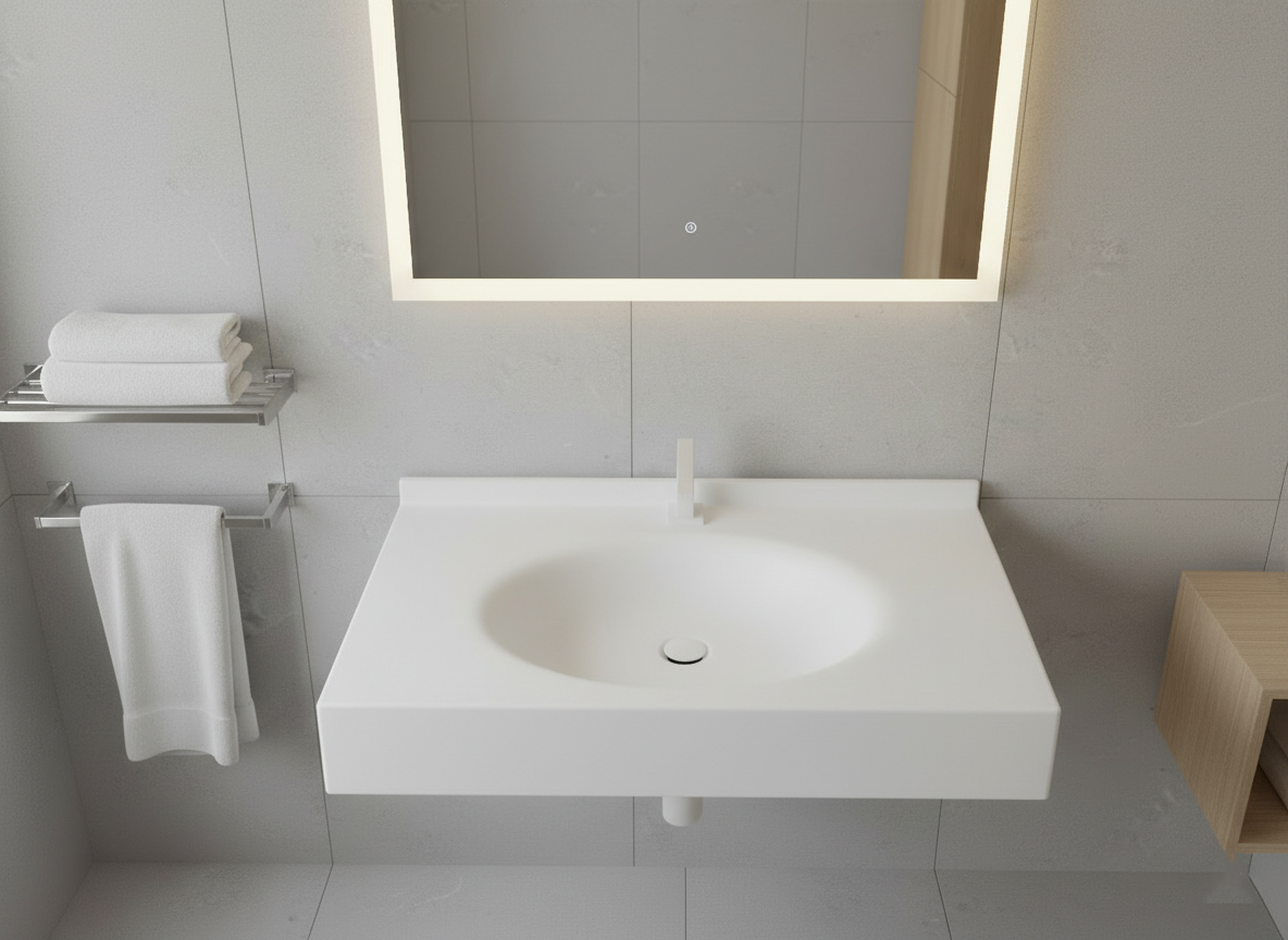 Le plan vasque suspendu avec vasque ovale intégrée en Corian Solid Surface est une alliance parfaite entre confort et design. Sa conception monobloc, sans raccord visible, garantit un rendu esthétique haut de gamme et une hygiène optimale. La forme ovale, douce et fluide, apporte une touche de raffinement et s’intègre harmonieusement dans tout type de salle de bains, du style contemporain au style classique revisité. Reconnu pour ses qualités exceptionnelles, le Corian offre une surface hygiénique et non poreuse, résistante aux taches et à l’humidité, facile à nettoyer et agréable au toucher. Durable, réparable et disponible dans un large choix de coloris, ce matériau haut de gamme s’impose comme la référence des surfaces de salle de bains modernes. Le plan vasque suspendu ovale incarne le mariage parfait entre esthétique, robustesse et facilité d’entretien.