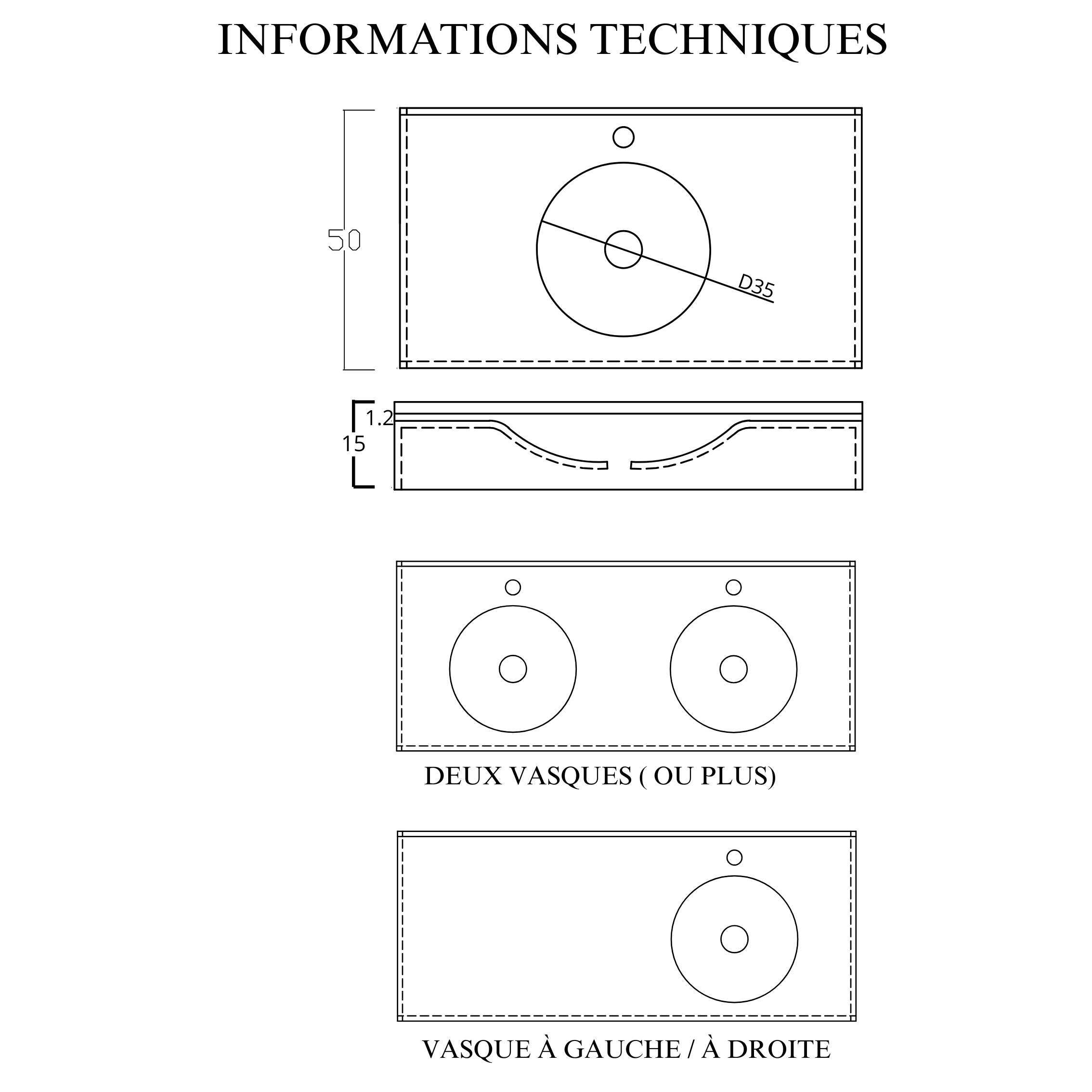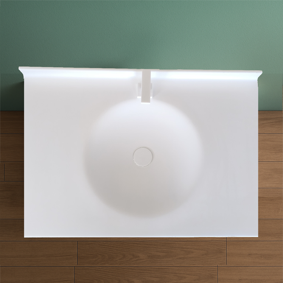 Le plan vasque suspendu avec vasque ronde intégrée en Corian Solid Surface incarne l’élégance et la praticité. Sa conception monobloc, sans joints apparents, assure une hygiène irréprochable et une facilité d’entretien incomparable. La forme ronde de la vasque apporte douceur et harmonie, créant une atmosphère apaisante et contemporaine dans la salle de bains. Grâce aux propriétés uniques du Corian surface non poreuse, résistance aux taches, entretien facile et durabilité exceptionnelle ,ce plan vasque offre une solution fiable et esthétique pour un usage quotidien. Disponible en plusieurs coloris, il s’adapte aussi bien aux intérieurs minimalistes qu’aux espaces haut de gamme. Le Corian, réparable et renouvelable, garantit une longévité exceptionnelle, faisant de ce plan vasque suspendu une solution durable et élégante.